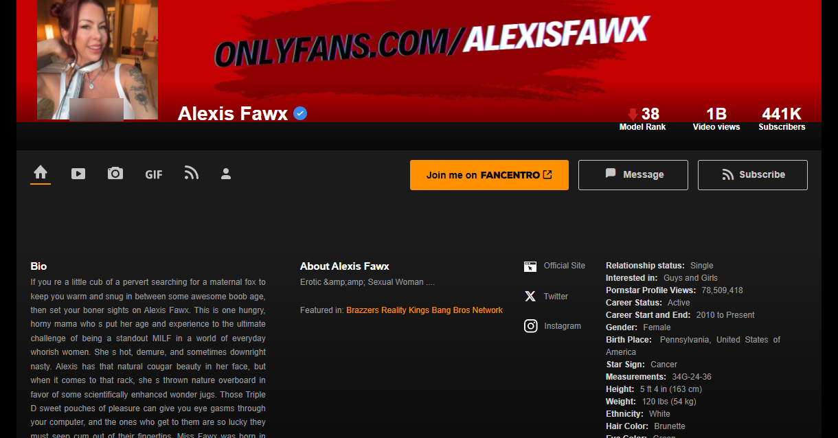 I don’t say this lightly – Alexis Fawx is freakishly underrated for how god-tier her performances are. You ever meet someone who’s funny as hell off-screen, only to turn savage and dripping hot the second the camera rolls? That’s Alexis. By day, she’s warm, quirky, and throwing orgasm coffee jokes on IG. By night, she becomes your dirtiest MILF fantasy wrapped in lace and wine-fueled moans.She’s starred in everything from mainstream studio smut like Bang Bros to threesomes-turned-orgy epics on Twistys. Anal scenes? Done. Hardcore threesomes? Done. Kink roleplay? Please – she eats it for breakfast. She commits. She teases. She laughs mid-fuck and still makes you finish begging for more. No wonder fans have built whole subreddits worshipping her boobs, her voice, even her laugh. (Yes, her laugh. It’s fucking hot.)If you want range, authenticity, humor, and orgasm-guarantee chemistry, Alexis is the jackpot. She doesn’t do mediocre – and trust me, you’ll feel that through the screen. Especially if you’re cock-first on a couch with tissues flying.