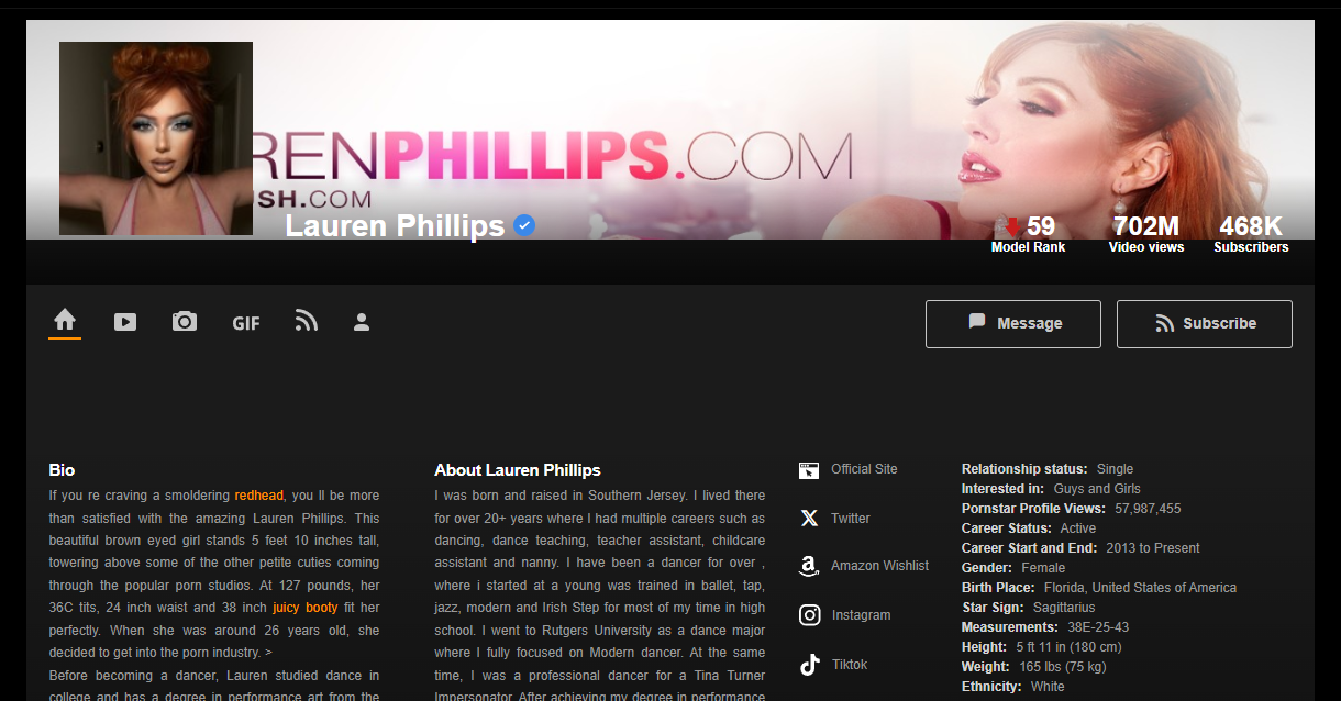 Some performers walk onto the screen – Lauren Phillips storms it. You see that blazing red hair and statuesque figure, and you already know things are about to get real fucking heated. But this isn’t just about looks. Lauren is that rare performer who’s mastered the art of being both dominant and submissive with fluid finesse. She builds tension with the eyes, seduces you with her voice, and breaks every expectation with how downright filthy she gets when the camera rolls.You know that saying, “She’s not like other girls”? Lauren put that on a strap-on and pegged it. From cuckold setups to hardcore anal gangbangs, she owns the scene. There’s this primal intensity to her performances – like she’s not just acting like she wants it, she really, really does. And you feel it. You jerk to it. You remember it.She’s also a switch hitter behind the scenes. Ask around and you’ll find people who say she’s one of the most professional, smart, and authentic talents working today. That’s not just hot – it’s rare as hell in this sea of surface-level clones. Talent like hers comes with stamina, range, and sheer horny IQ.